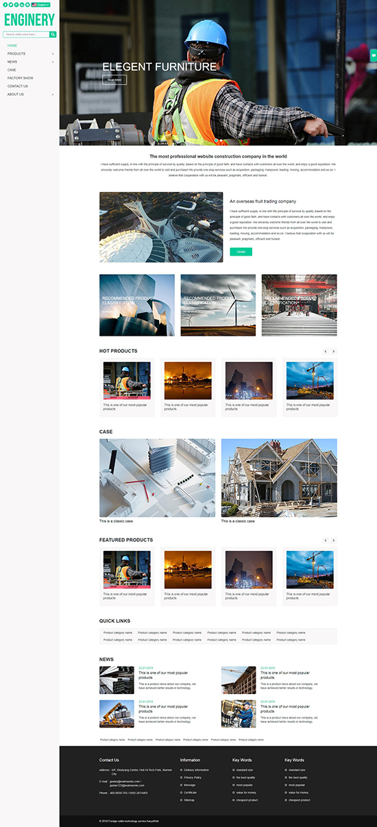 响应式建筑工程装修装饰英文外贸网站模板WN16+
