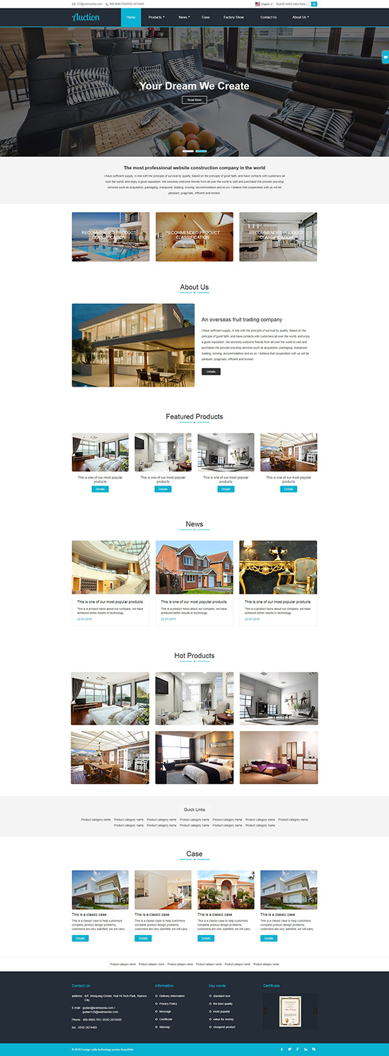 响应式室内设计装修家具用品英文外贸网站模板